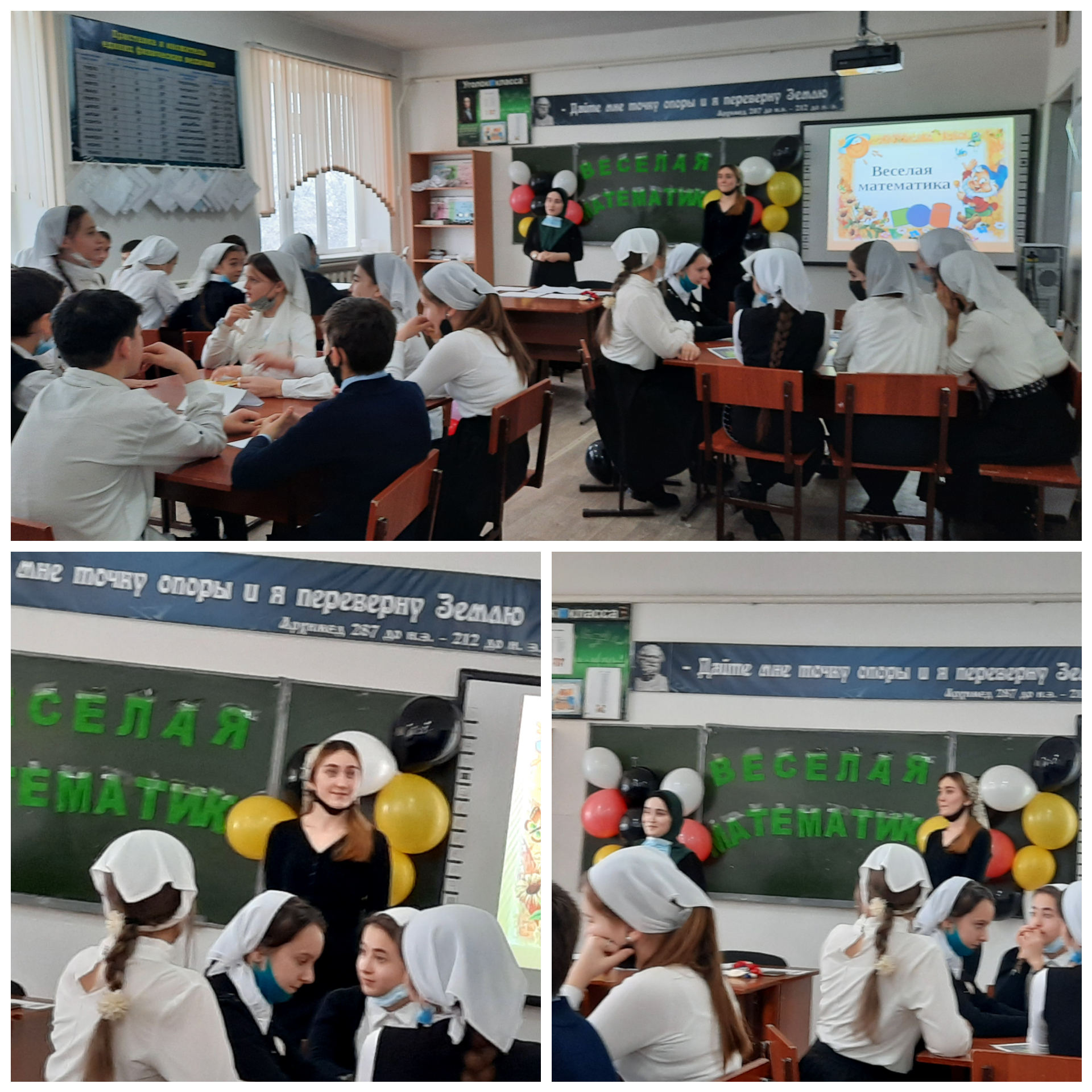 Математический конкурс среди учащихся 7-х классов "Веселая математика". Организовали и провели молодые учителя Хашумова Заира Мусаевна и Чертоева Марха Лечаевна.