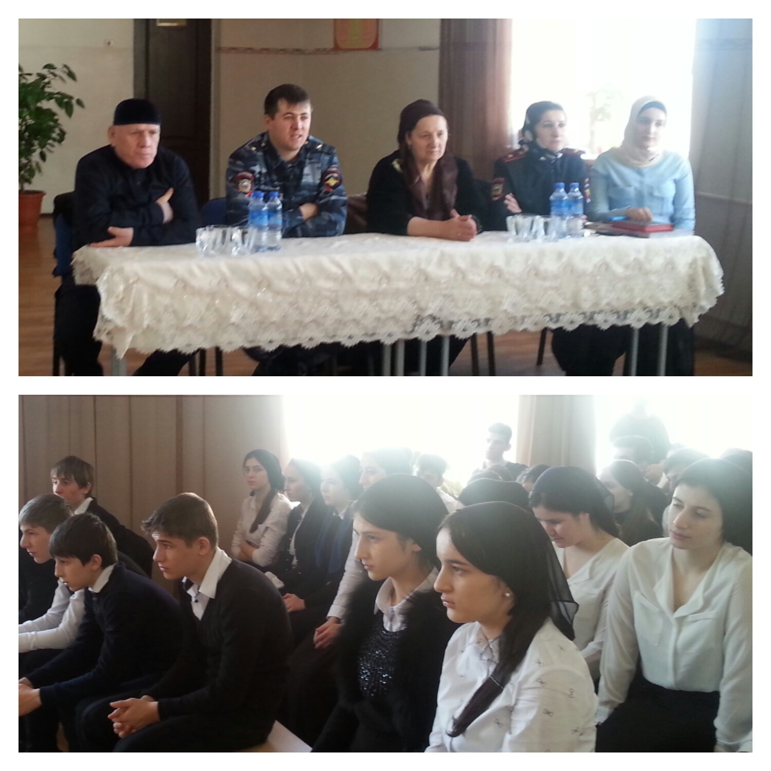 06.02.2017Об исполнении протокольных поручений Главы ЧР. Р.А.Кадырова. №01-87 от 26.09.2014г.№01-84 от 17.09 2014г. № 01-32 от 30.09.2016г.«О необходимости соблюдения правил поведения на дороге водителями, пассажирами, пешеходами и др. участниками дорожного движения». №01-04 от 27.01.2015г. №01-99-10.12.14г По профилактике наркомании, алкоголя и табакокурения, а также о недопущении вовлечения молодежи в ряды НВФ.С учащимися встретились Дукаев Ахмед-совет старейшин Ачхой-Мартановского района, Актемирова Б.Ш. -специалист администрации сельского поселения, старший инспектор ПДН-Насипова М.С., начальник полиции Хасиев Х.Х.