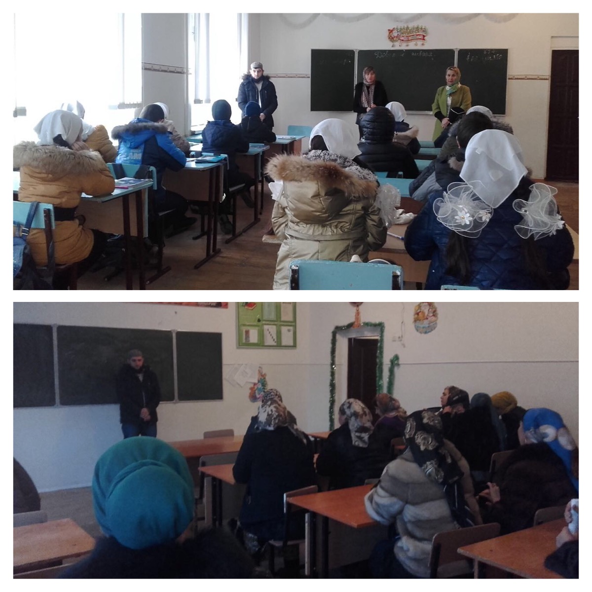 Провели встречу с представителем духовенства Исмаиловым К, также, встречи с инспекторами по делам несовершеннолетних, были частые беседы с родителями, с врачами-наркологами. Провели общешкольное родительское собрание «Как заметить надвигающийся суицид». 3 декабря было проведено педагогическое совещание на тему: «Признаки эмоциональных нарушений. Суицидально опасная референтная группа».Классные руководители совместно с психологом, соц. педагогом, зам. дир. по ВР провели тематические классные часы « О мерах профилактики суицида среди детей и подростков». Эта диагностика была проведена среди учащихся 5-11 классов. По итогам проведенных мероприятий не были выявлены дети с девиантным поведением. По результатом анкетирования видно, что нет детей, нагруженных проблемами в отношениях с родителями и сверстниками.Наоборот, дети строят планы на будущее, ставят цели. Нет детей, потерявших интерес к учебе, предмету, учителю., но есть слабоуспевающие дети, с которыми постоянно работает классный руководитель и учитель-предметник, и школьный психолог.Такие дети вызываются на Советы профилактики.Предупреждая внутренний конфликт, связанный с возрастными особенностями подросткового возраста, с детьми-подростками регулярно проводится вышеперечисленная профилактика.Одним из направлений решения проблемы помощи трудному подростку и организации системы эффективной воспитательно-профилактической работы с ним является взаимодействие различных служб школы: педагога-психолога, социального педагога, зам. директора по воспитательной работе, классного руководителя, педагога по ДНВ, руководителей кружков и секций.Социально-психологической службой были проведены индивидуальные консультации и беседы с этими ребятами: выявлены проблемы в общении.