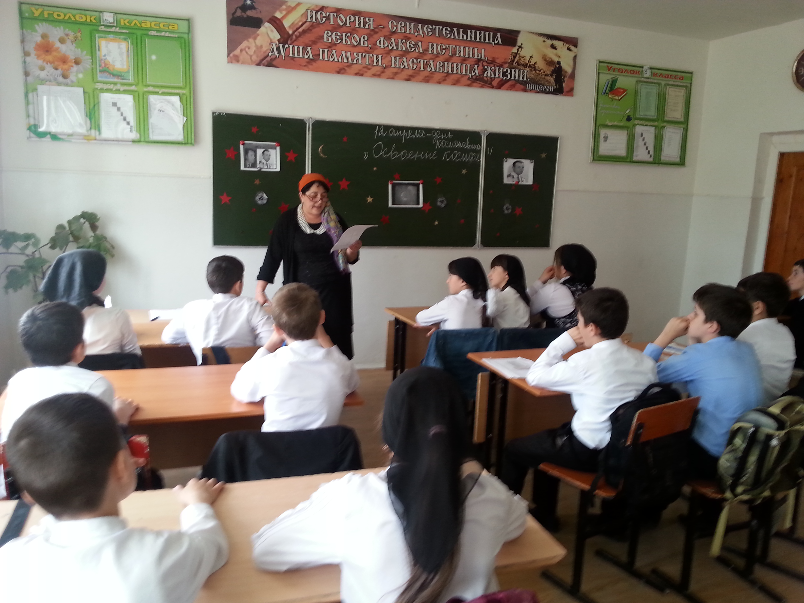 В День космонавтики, в 6 "В" классе был проведен открытый урок на тему: "Освоение космоса".Урок провела учительница физики Юнусова Р.А.