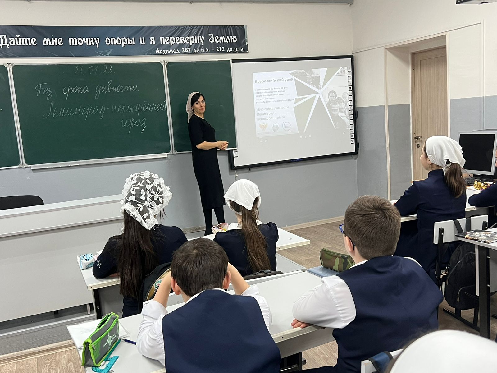 27.01.2023В МБОУ «СОШ 4 им. С. Хачукаева с. Ачхой-Мартан» был проведен урок мужества, посвященный Дню полного освобождения Ленинграда от блокады. Обучающиеся подготовились к этому мероприятию. Ребята освятили блокадные события с разных сторон. Прозвучали эссе по следующим темам: «Дети блокадного Ленинграда», «О дороге жизни», «О жизни горожан» и другие. Учащиеся пересказали воспоминания своих бабушек о блокадных днях.Оздамирова М.Л. провела с ребятами беседу «Чтоб памяти нить не прервать...» и задала ряд вопросов из истории этого времени. Ответы были, практически, хором. Почти все знали ответы на заданные вопросы. Это произвело сильное впечатление не только на присутствующих взрослых, но и на самих обучающихся.Организация и проведение классных часов, посвященных блокадной теме, играет огромную роль в воспитании современной молодежи, позволяет им задуматься о своей жизни, изучить, осмыслить и анализировать опыт поколений. В процессе проведения подобных мероприятий происходит формированиепатриотического воспитания, чувства сострадания и ответственности подростков.