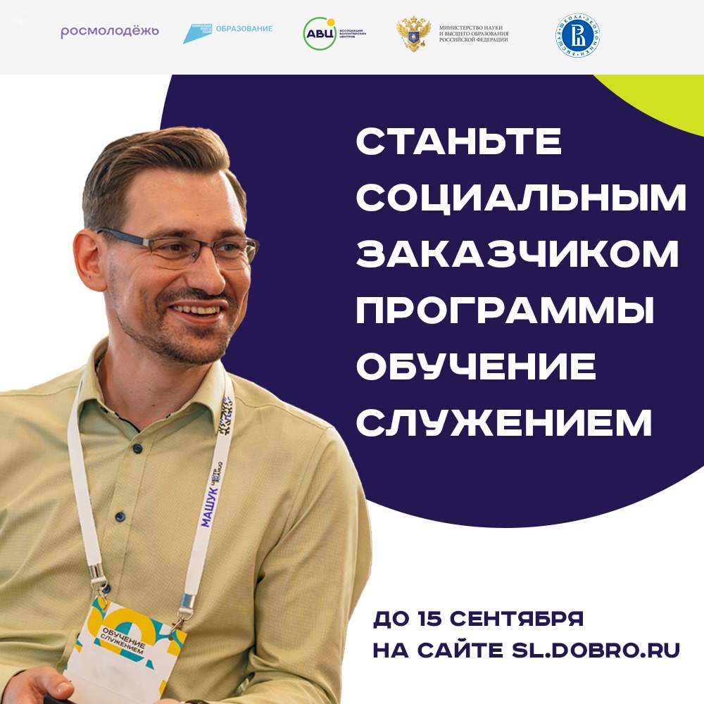 04.09.2023Станьте социальным заказчиком программы "Обучение служением" до 15 сентября.