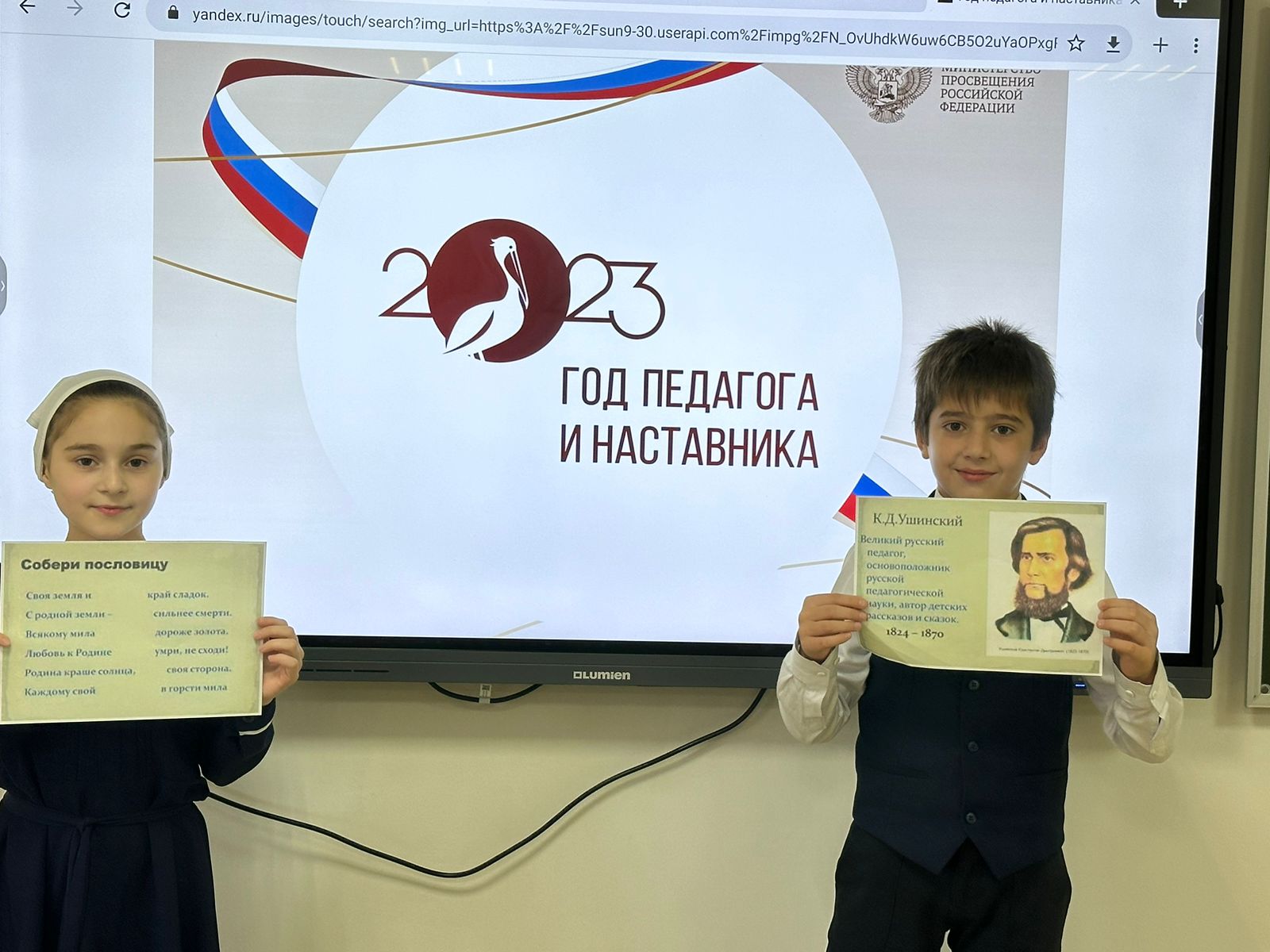 Ушинский — одна из самых выдающихся и влиятельных фигур в истории российского образования. Его идеи и методы поразили не только современников, так же продолжает вдохновлять педагогов в наше время. Одной из ключевых тем в творчестве Ушинского была родина. Он считал, что родина — это не только место на карте, но и духовная связь с предками, с историей, с культурой. В своих произведениях Ушинский прославляет родину и пытается внушить своим читателям и ученикам любовь и уважение к своей малой родине. Особый интерес участников мероприятия вызвало чтение рассказа К.Д. Ушинского «Дети в роще». После его прочтения ребята приняли активное участие в викторине и правильно ответили на все вопросы. Ход мероприятия сопровождался презентацией «Жизнь и творчество К.Д. Ушинского». #ГодНаставника2023 #ГодПедагога2023 #ГодПедагогаНаставникавЧеченскойРеспублике #ГПН_Чечня_2023