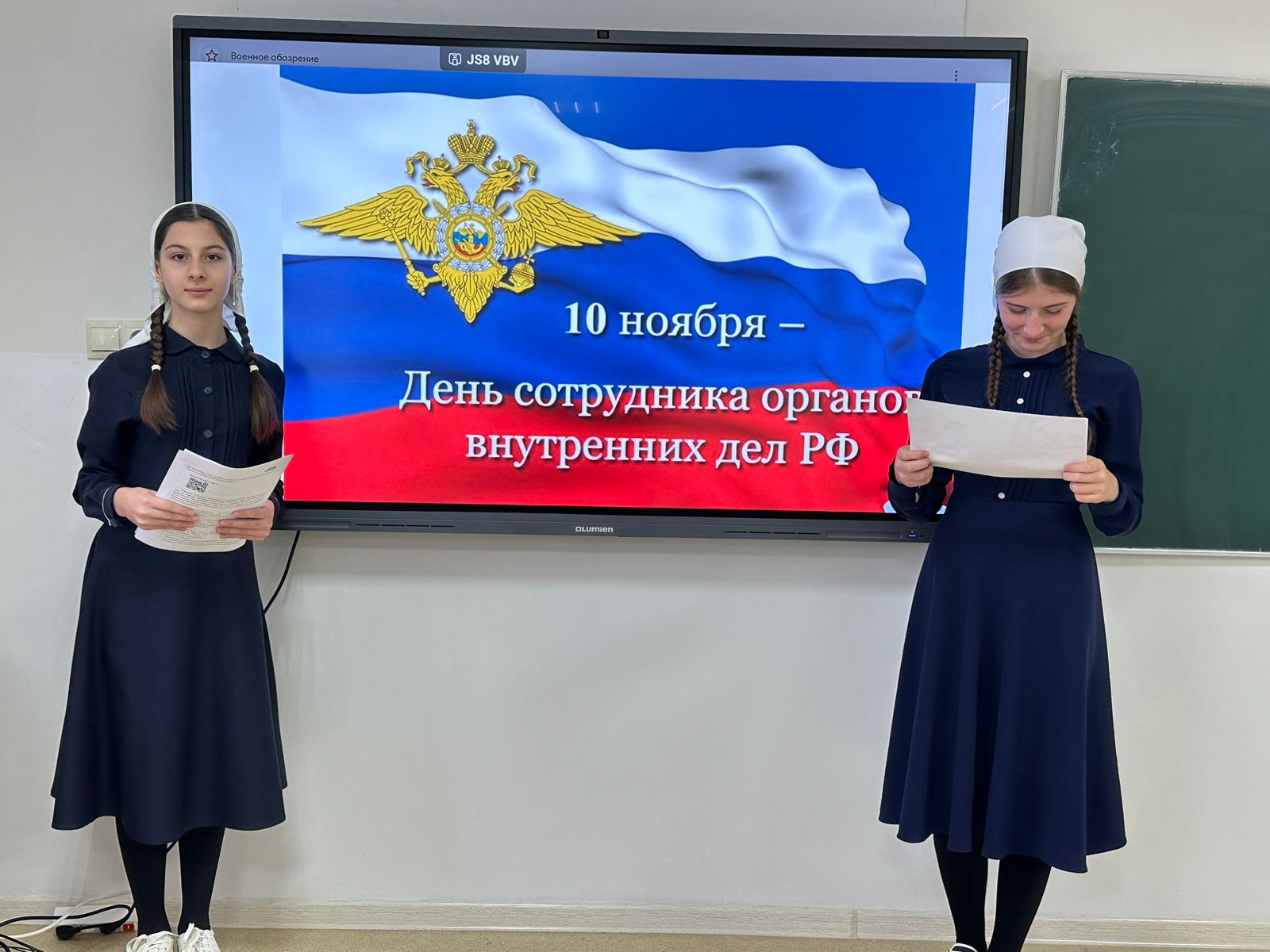 В этот день выдают премии и награды тем, кто это заслужил честным трудом, а также устраивают поздравительные музыкальные концерты, где отдается честь и хвала тем, кому мы обязаны своим спокойствием, безопасностью, а, следовательно, и счастьем…»- такими словами открыла мероприятие директор школы Сардалова Альбина Башировна.
