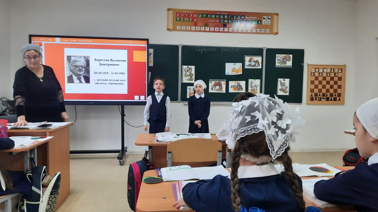 7.12.23 прошел открытый урок по литературному чтению в 2"б" классе на тему: Отражение темы "Дружба животных" в стихотворении В.Д. Берестова "Кошкин щенок". Провела открытый урок Гайсултанова Я.Б.