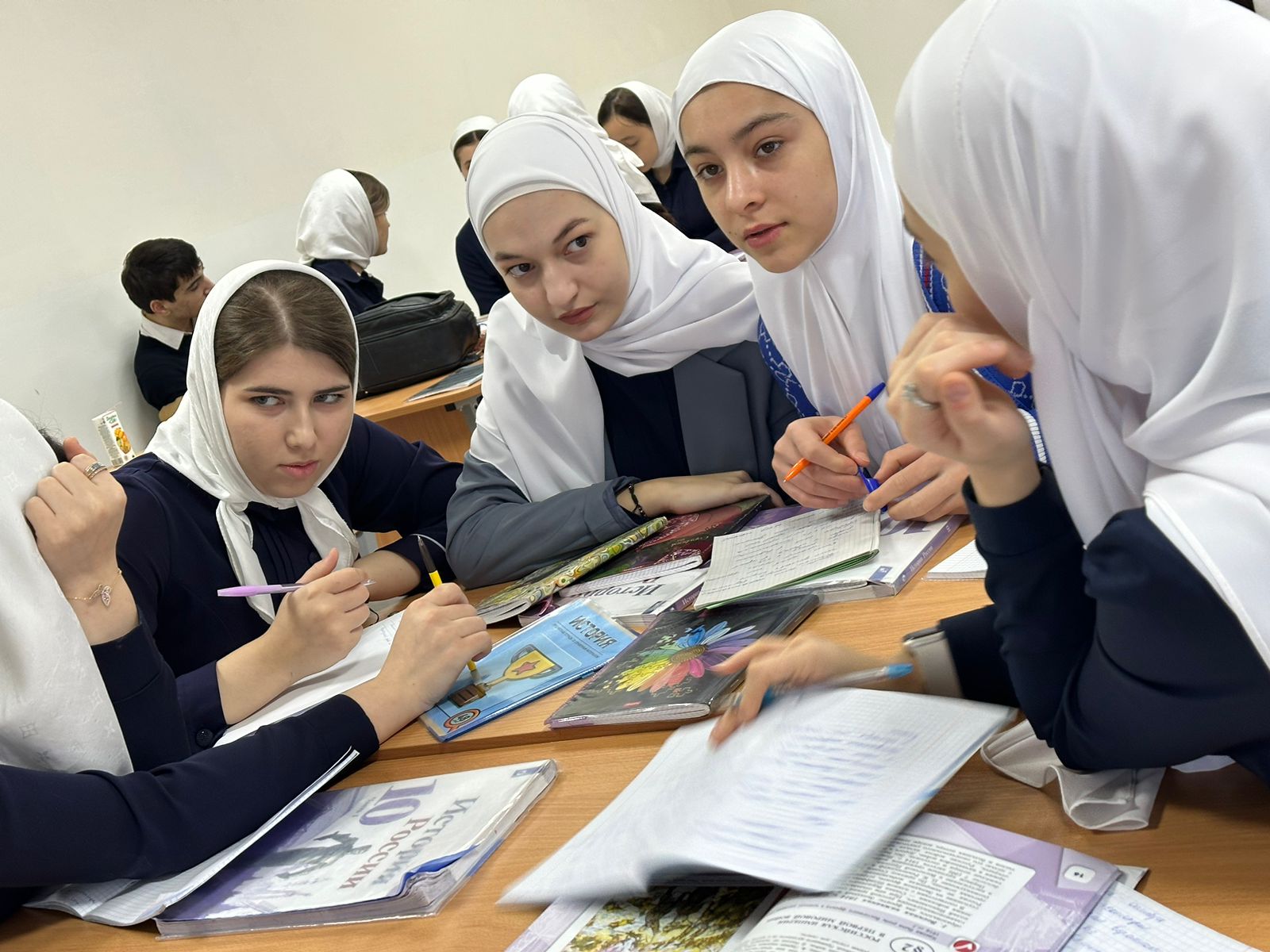 Для учащихся 10-11 классов был проведен круглый стол с целью развития мышления и критичности ума учащихся, умения анализировать и делать самостоятельные выводы. Учащиеся подготовили свои выступления Умарова Ясмина (10 класс) – Пенсионное законодательство на защите прав слабых. Махмудов Ибрагим (11 класс) – Избирательное законодательство. Учащиеся 11 класса Хаджаева Карина и Туганова Мата подготовили презентацию: «Семья, подросток и закон». К концу мероприятия учащиеся пришли к заключению о том, что символы государства - это и история страны и ее сегодняшний день. Они выражают особенности исторического пути страны, ее отличительные черты в ряду других стран. Ко всем существовавшим и существующим ныне символам государства надо относиться с уважением.