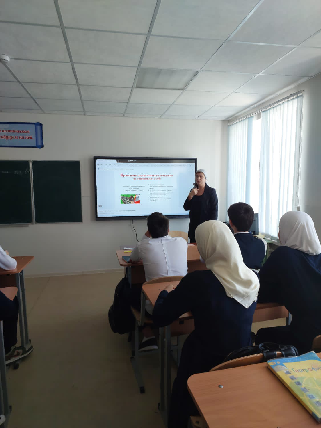 Беседа с учащимися 7-11 классов на тему «Деструктивное поведение». Беседу провела педагог-психолог Ахмадова А.Б.