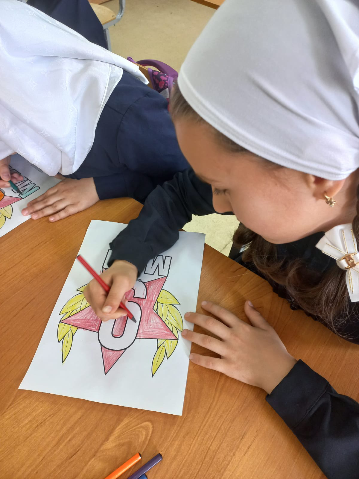 Ученики нашей школы украсили окна школы главными символами Победы, в том числе фигурой журавля, в память о тех кто не вернулся с полей Великой Отечественной войны.