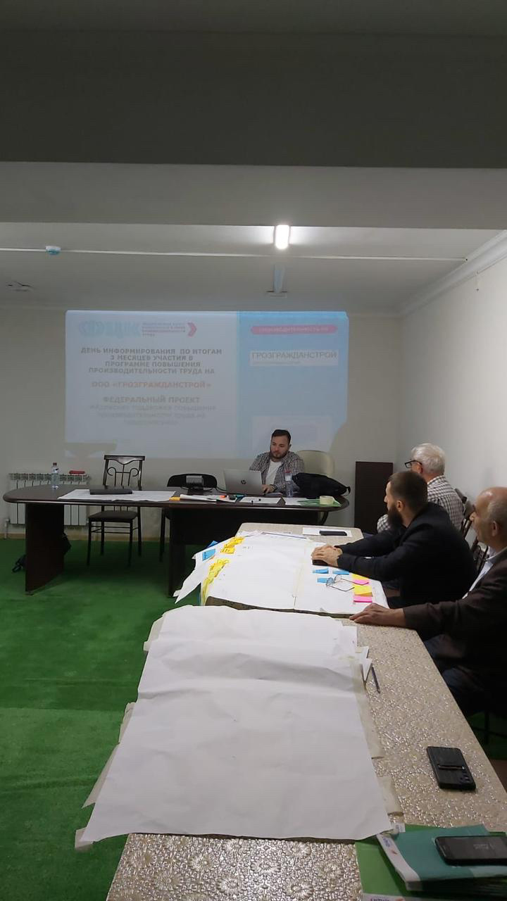 Очередные мероприятия прошли в аудитории ООО «Грозгражданстрой» рамках реализации национального проекта «Производительность труда», под руководством тренеров-консультантов Федерального центра компетенций (ФЦК) А.М. Новикова и Е.В. Казанцевой. Рабочая группа, состоящая