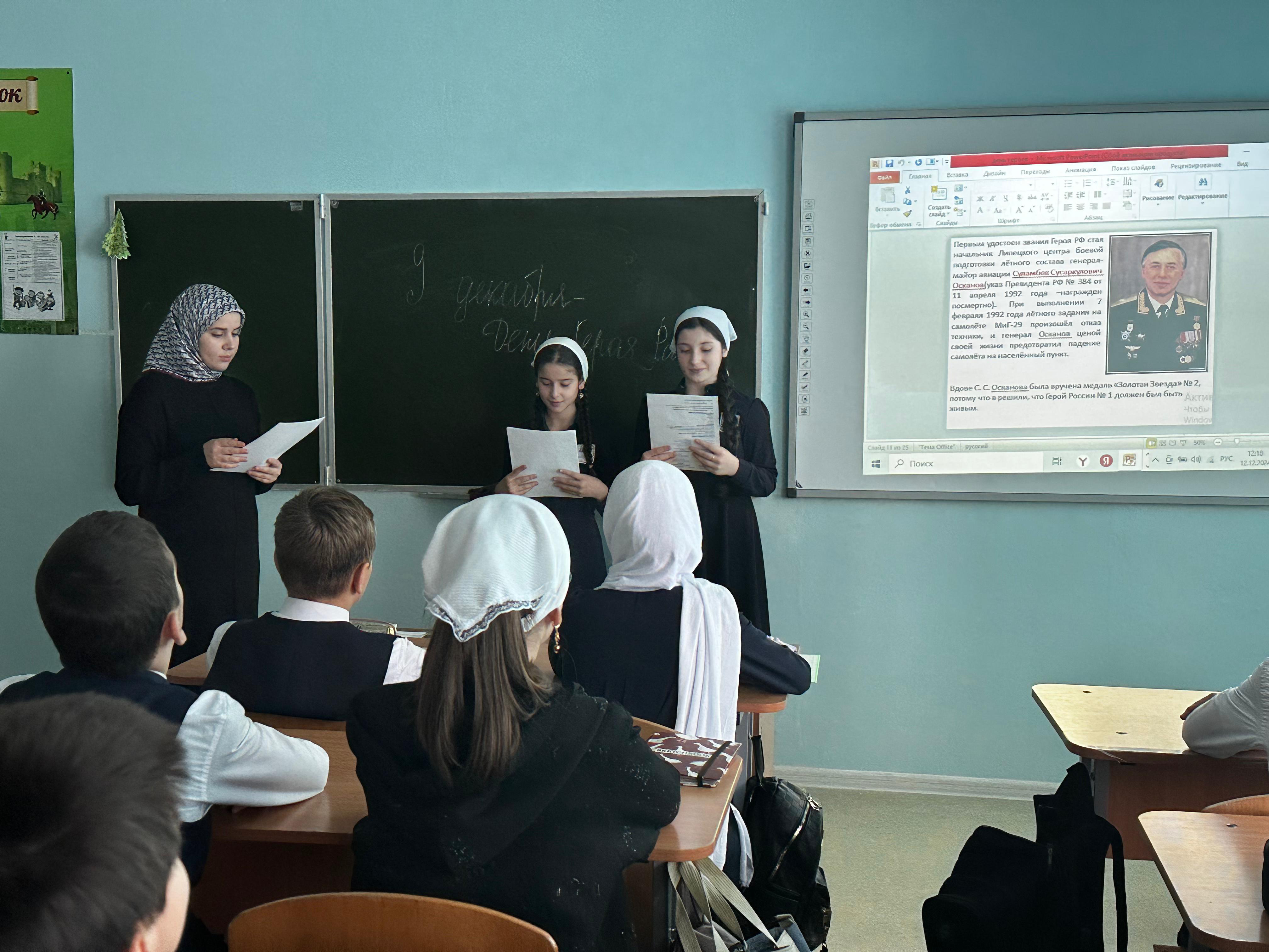 В ходе классного часа учащиеся узнали о значении Дня Героев Отечества, который отмечается в России 9 декабря. Ученики узнали о выдающихся личностях, ставших героями страны благодаря своим подвигам и самоотверженности.