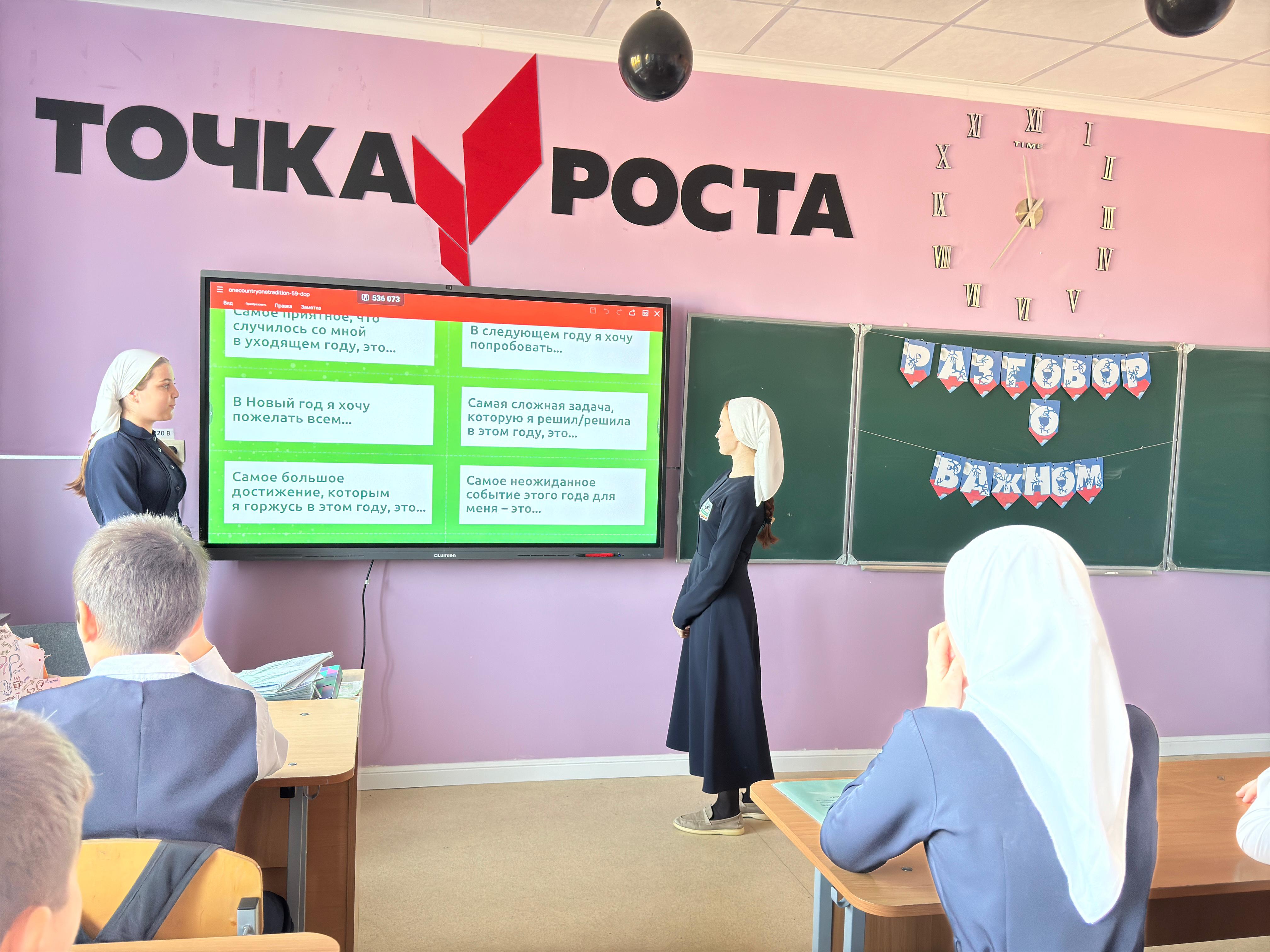 23 декабря в СОШ №4 им.С.Хачукаева с.Ачхой-Мартан прошли «Разговоры о важном» по теме «Одна страна – одни традиции».