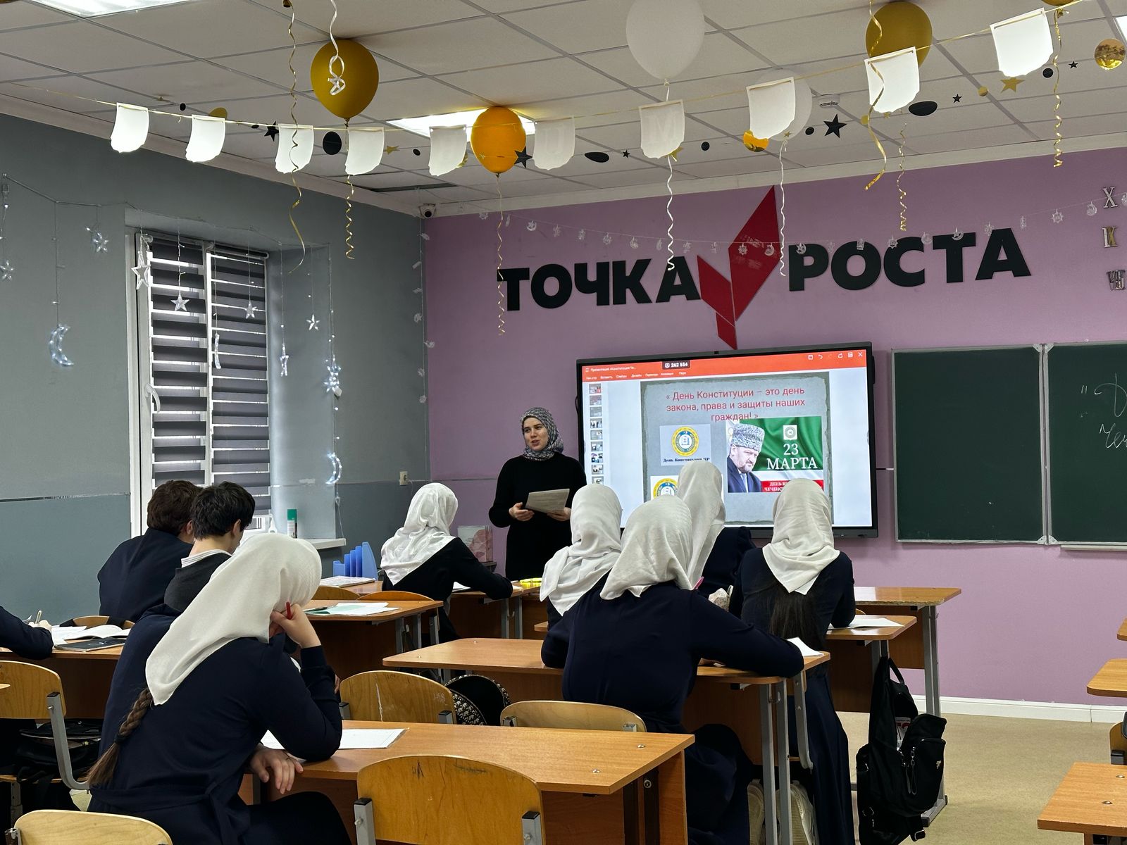 19.03.202523 марта мы отмечаем День Конституции Чеченской Республики - одну из самых знаменательных дат в жизни всего чеченского народа. Этот исторический день стал началом одного из лучших времён для жителей нашей республики.Согласно плану воспитательной работы школы, с целью формирования представления о важности соблюдения законов государства; развития гражданско-правового образования учащихся; формирования активной гражданской позиции и правового сознания; приобретения навыков правовой культуры; развития гражданской инициативы и гражданской ответственности, в МБОУ «СОШ №4 им. С.Хачукаева проведен ряд мероприятий, посвященных Дню Конституции Чеченской Республики.Череду мероприятий, посвященных Дню Конституции ЧР, открыли учащиеся начальных классов флешмобом. Во дворе школы они исполнили гимн Чеченской Республики.