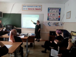 22.12.2017В МБОУ «СОШ №4 с.Ачхой-Мартан» 8.11.2017 г. завуч по УВР Юнусова Рубани Ахмедовна провела семинар после прохождения курса повышения квалификации под руководством Галеевой Натальи Львовны-профессора кафедры управления образовательными системами. На семинаре завуч рассказала, собравшимся учителям, о системе достижений учащихся в соответствии с требованиями ФГОС.«Критериальное оценивание через дескрипторы: возможности и проблемы».Юнусова Р.А. ознакомила учителей, что дескрипторы последовательно показывают все шаги учащегося по достижению наилучшего результата по каждому критерию и оценивают их определенным количеством баллов. Рубрика – критерии дескрипторы. Рубрики показывают, зачем ребенок учится, критерии показывают, чему он должен научиться, а дескрипторы показывают, как он это может сделать.