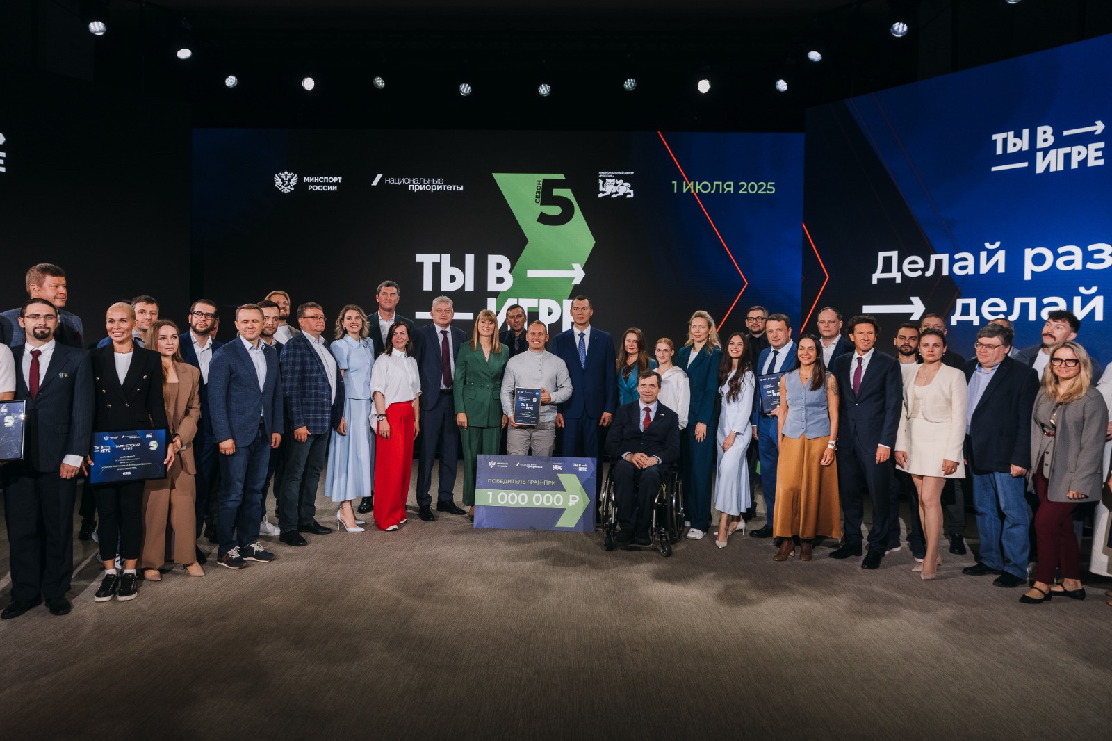 1 июля были объявлены и награждены победители пятого сезона Всероссийского конкурса спортивных проектов «Ты в игре», который проводит АНО «Национальные приоритеты» при поддержке Министерства спорта России. На торжественной церемонии, состоявшейся в Национальном центре «Россия», присутствовали финалисты и эксперты конкурса, а также почетные гости, в числе которых министр спорта Российской Федерации Михаил Дегтярев и генеральный директор АНО «Национальные приоритеты» София Малявина.